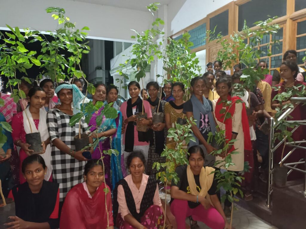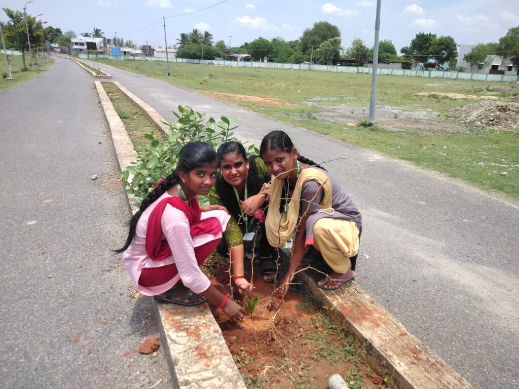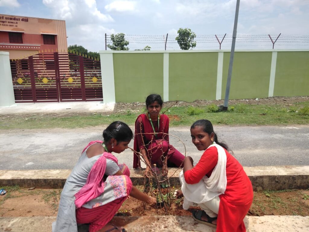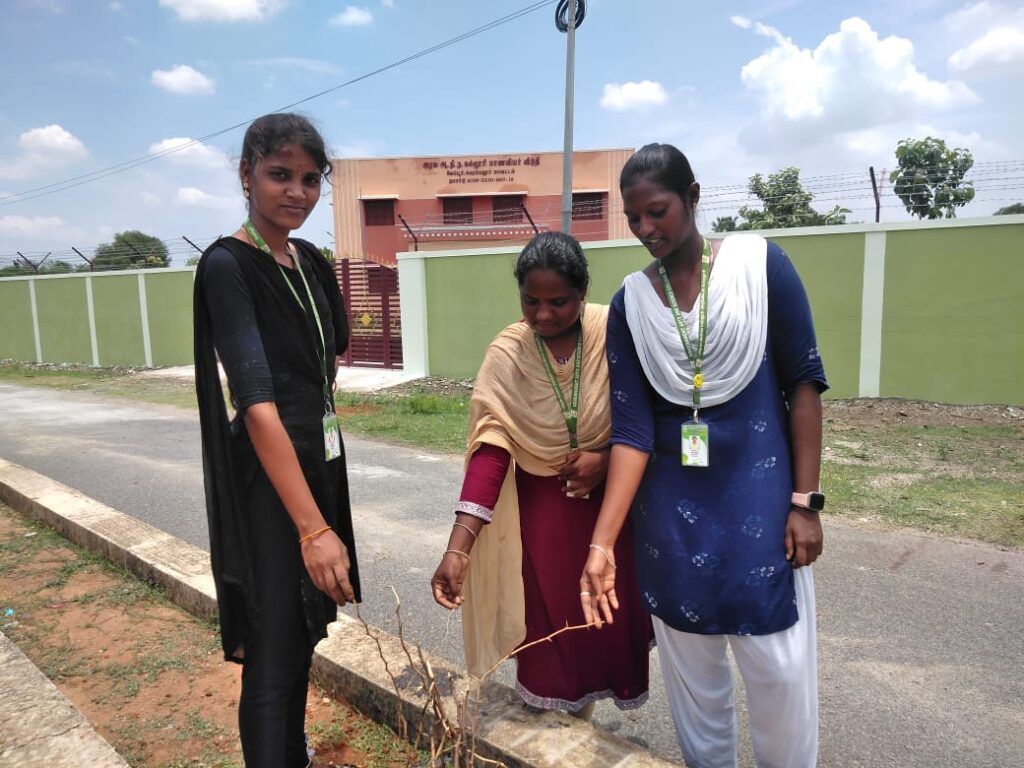 எங்கள் மாணவிகள் (போர் வாட்டர் பைப் லைன் இல்லாமல்) 400 மீட்டர் தூரம் கல்லூரி உள்வளாகத்தில் இருந்து நீர், வாளியிலும், வாட்டர் பாட்டிலிலும் குடத்திலும் சுமந்து எடுத்து வந்து ஒவ்வொரு மரக்கன்றுக்கும் நீரூற்றியதால் பசுமை எழில் நிறைந்த இயற்கை சூழல் 5 டிகிரி செல்சியஸ் வெப்பம் கல்லூரி வளாகத்திற்குள் குறைந்துள்ளது. எங்கள் மாணவிகளின் சாதனையால் இது சாத்தியமானது.
