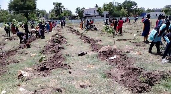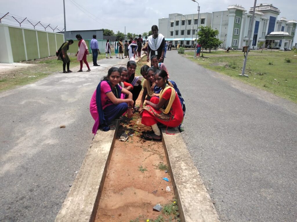 குடத்தால் நீர் சுமந்து மரக்கன்று வளர்த்த நம் கல்லூரி மாணவிகள்.