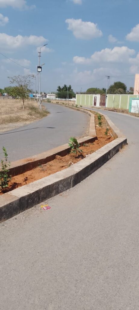 கல்லூரி சாலையின் நடுவில் நடப்பட்ட மரங்கள் (தற்பொழுது)